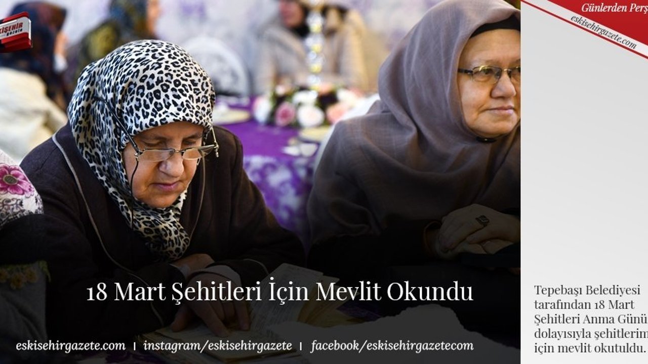 Tepebaşı Belediyesi tarafından 18 Mart Şehitleri Anma Günü ve Çanakkale Deniz Zaferi'nin 108'inci yıl dönümü dolayısıyla düzenlenen etkinlikte şehitlerimiz için mevlit okutuldu. Altınsaray Davet Salonu'nda gerçekleştirilen programda CHP Eskişehir Milletvekilleri Utku Çakırözer ve Tepebaşı Belediye Meclis üyeleri ile mahalle muhtarları ve çok sayıda Belde Evi kursiyeri kadın yer aldı.