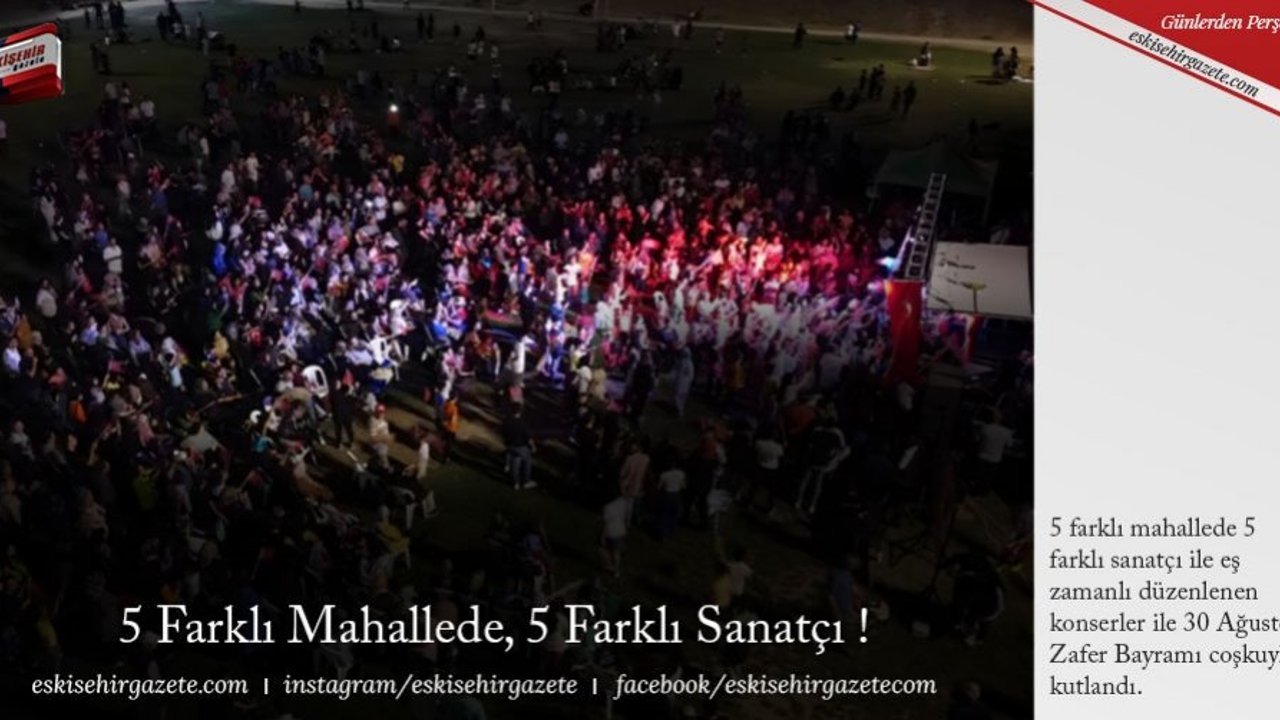 5 farklı mahallede 5 farklı sanatçı ile eş zamanlı düzenlenen konserler ile 30 Ağustos Zafer Bayramı coşkuyla kutlandı.