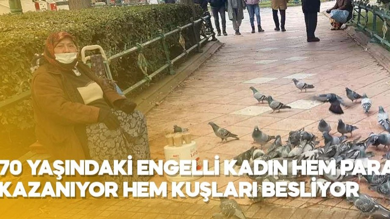 Eskişehir'de 70 yaşında fiziksek engelli Gülhanım Dal, kış aylarının gelmesiyle yem bulmakta zorlanan kuşlar için yem satarak hem geçimini sağlıyor, hemde kuşların aç kalarak ölmelerinin önüne geçiyor.