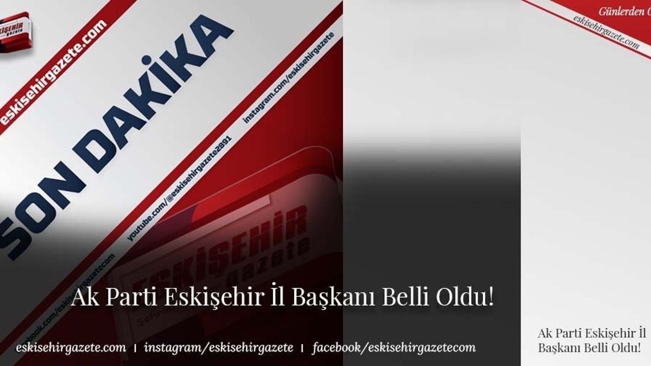 Ak Parti Eskişehir İl Başkanı belli oldu. Zihni Çalışkan'ın istifası üzerine Ak Parti Eskişehir İl Başkanı Süleyman Reyhan oldu.