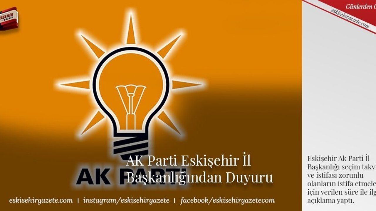 Ak Parti Eskişehir İl Başkanlığının seçim takvimi ve istifası zorunlu olanların istifa etmeleri için verilen süre ile ilgili yaptığı açıklama:
