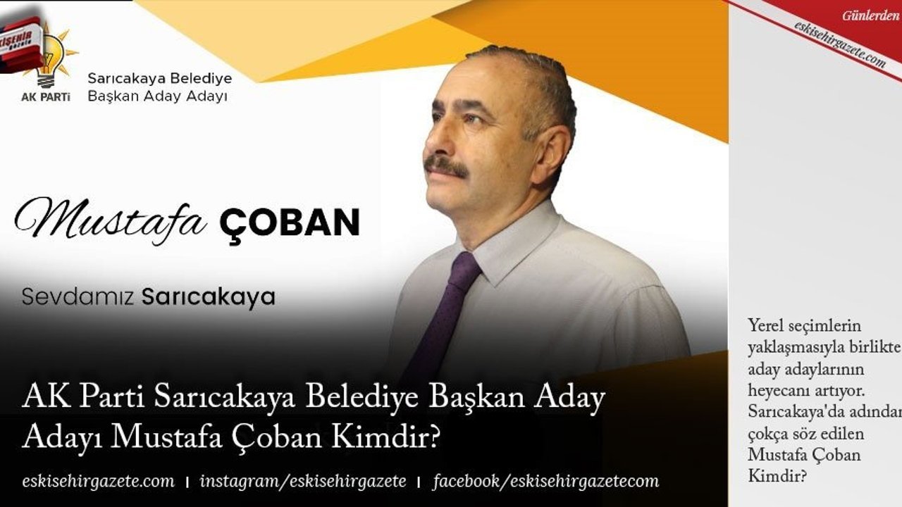 İngilizce ve Arapça dillerini bilen ve Marmara Üniversitesi İlahiyat Fakültesinden 1992 yılında mezun olan Mustafa Çoban AK Parti Sarıcakaya Belediye başkan aday adayıdır.