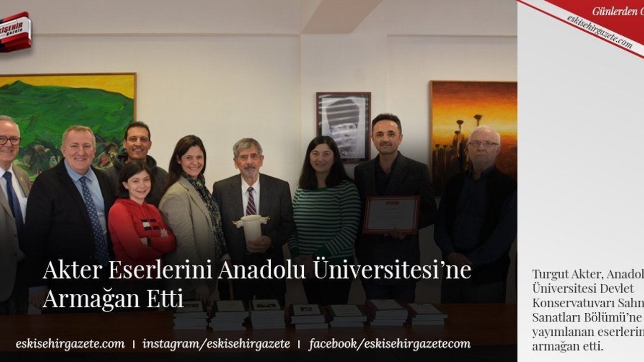 Turgut Akter, Anadolu Üniversitesi Devlet Konservatuvarı Sahne Sanatları Bölümü'ne yayımlanan eserlerini armağan etti.