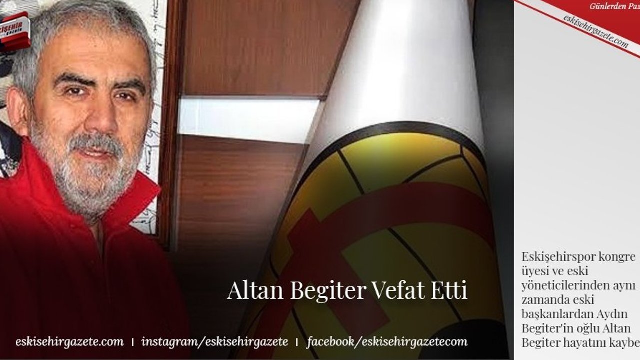 Eskişehirspor kongre üyesi ve eski yöneticilerinden aynı zamanda eski başkanlardan Aydın Begiter'in oğlu Altan Begiter hayatını kaybetti.