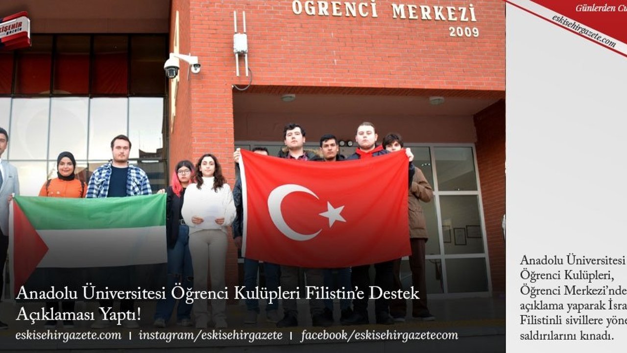 Anadolu Üniversitesi Öğrenci Kulüpleri, Öğrenci Merkezi'nde açıklama yaparak İsrail'in Filistinli sivillere yönelik saldırılarını kınadı.