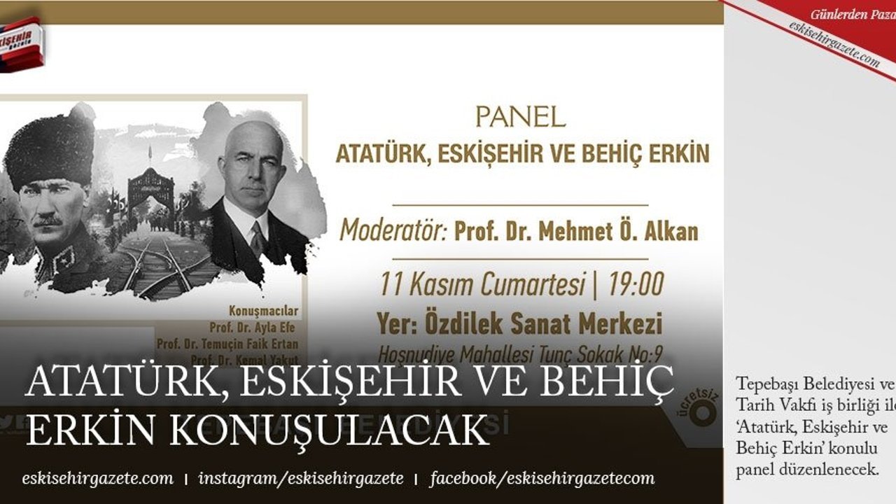 Tepebaşı Belediyesi, tarih bilincine katkı sağlayacak programlara ev sahipliği yapmaya devam ediyor. Bu kapsamda Tepebaşı Belediyesi ve Tarih Vakfı iş birliğinde düzenlenecek, 'Atatürk, Eskişehir ve Behiç Erkin' konulu panel, Eskişehirliler ile buluşacak.