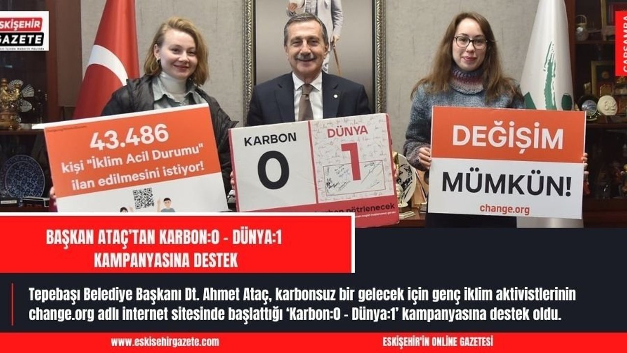 teşekkürlerini ilettiler. Daha sonra Başkan Ataç, 'Karbon:0 - Dünya:1' pankartını imzalayarak, kampanyaya destek verdi.