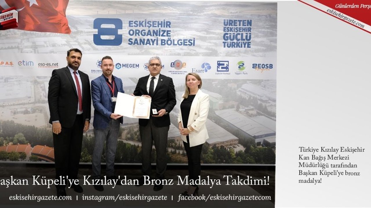 Türkiye Kızılay Eskişehir Kan Bağış Merkezi Müdürlüğü tarafından Başkan Küpeli'ye bronz madalya!