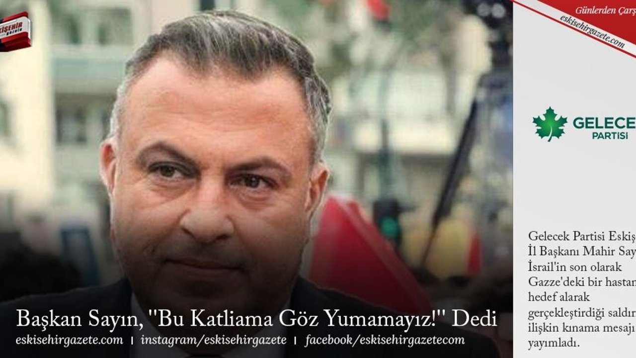Gelecek Partisi Eskişehir İl Başkanı Mahir Sayın, İsrail'in son olarak Gazze'deki bir hastaneyi hedef alarak gerçekleştirdiği saldırılara ilişkin kınama mesajı yayımladı.