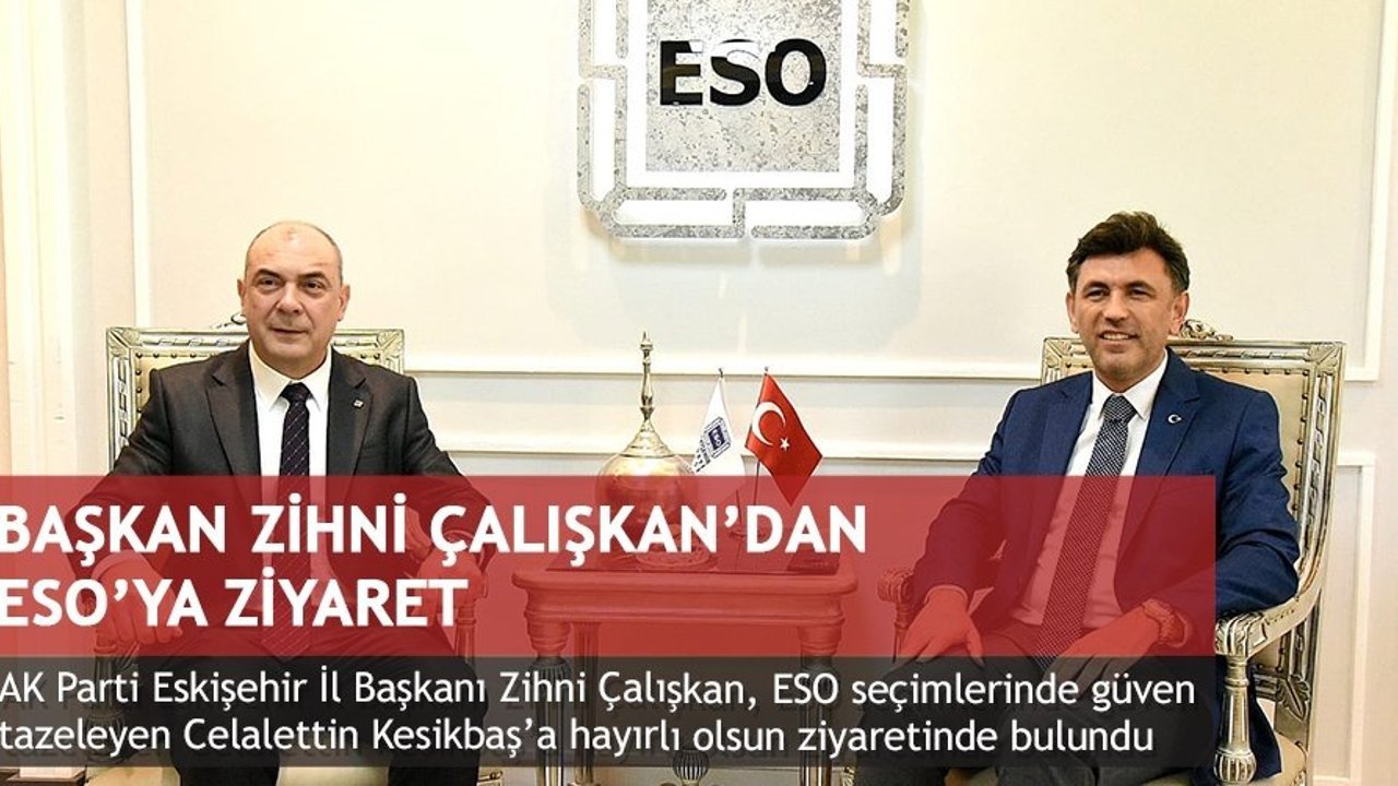Samimi ortamda gerçekleşen ziyarette Başkan Çalışkan, Eskişehir Sanayi Odası'nın şehir için önemli bir dinamik yapıyı teşkil ettiğini belirtti. Çalışkan, ESO'nun Türkiye ekonomisinde her geçen gün daha da aktif olmasının memnuniyet verici olduğunu söyleyerek, ESO Başkanı Celalettin Kesikbaş ve yönetim kurulu üyelerine yeni dönemde başarılar diledi.