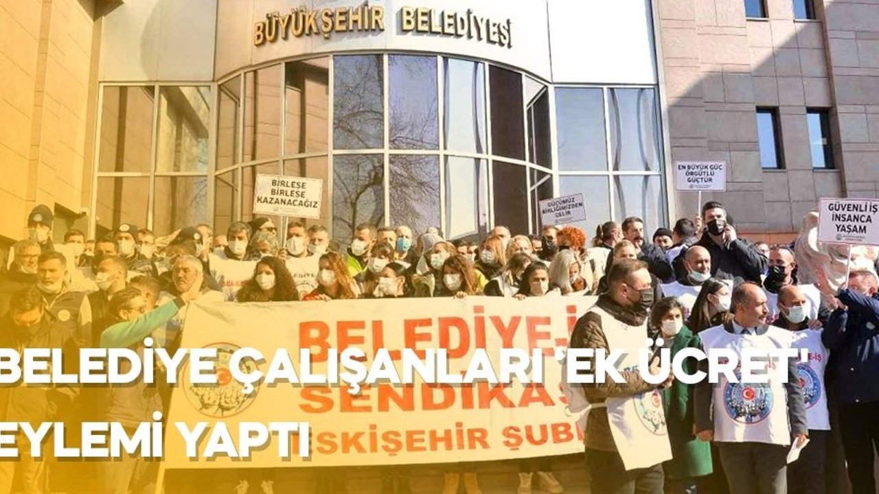 Asgari ücret zammından sonra Eskişehir Büyükşehir Belediyesi işçileri, aldıkları zam oranını yetersiz buldu. Aldıkları maaşın taban fiyatının 5 bin 350 liraya sabitlenmesini talep eden grup, ek ücretlerde de artış istedi. Belediye yetkilileriyle yapılan görüşmelerden olumlu sonuç alamayan çalışanlar, çareyi belediye binası önünde eylem yapmakta buldu. Büyükşehir Belediyesi binasının önünde toplanan kalabalık grup, sloganlar eşliğinde basın açıklaması yaptı.