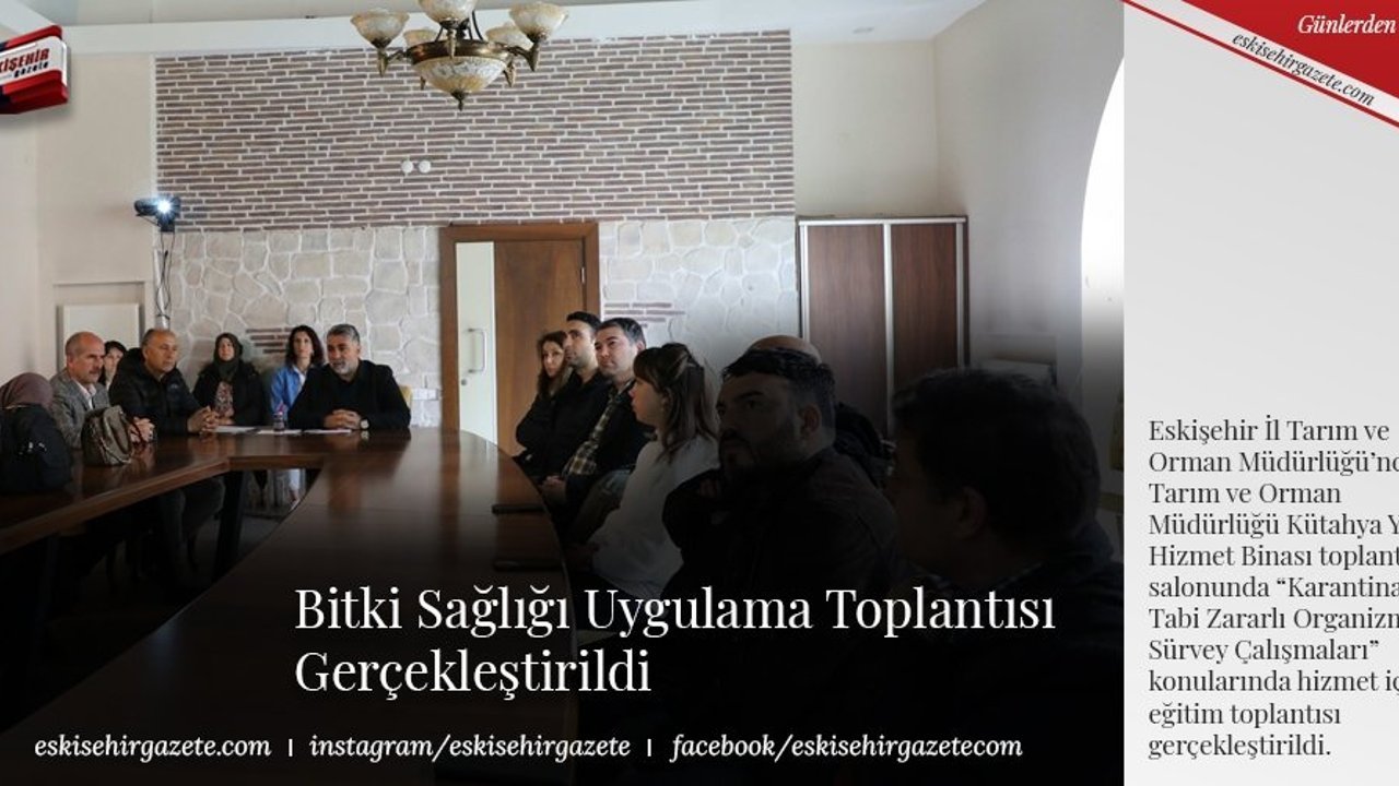 Eskişehir İl Tarım ve Orman Müdürlüğü'nce İl Tarım ve Orman Müdürlüğü Kütahya Yolu Hizmet Binası toplantı salonunda Eskişehir ilinde yürütülmekte olan 2023 yılı Bitki Sağlığı programı kapsamında İl/İlçe Tarım ve Orman Müdürlüğü bünyesindeki görevli teknik personelin katılımıyla 'Karantinaya Tabi Zararlı Organizma Sürvey Çalışmaları' konularında hizmet içi eğitim toplantısı gerçekleştirildi.
