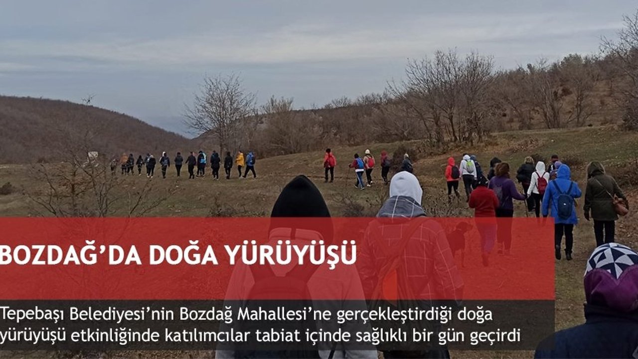 Bu kapsamda Bozdağ Mahallesi'ne düzenlenen doğa yürüyüşü etkinliği 40 vatandaşın katılımı ile gerçekleşti. Sabah saatlerinde Tepebaşı Belediyesi önünden hareket eden katılımcılar, kırsal alanda ve doğa içinde yürüyüş yaptı. Katılımcılar yürüyüşün ardından ise Bozdağ Mahallesi ve köy evi ziyareti gerçekleştirdi.