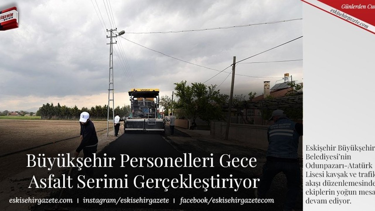 Eskişehir Büyükşehir Belediyesi'nin Odunpazarı-Atatürk Lisesi kavşak ve trafik akışı düzenlemesinde ekiplerin yoğun mesaisi devam ediyor. Projenin ikinci etabı kapsamında ekipler gece saatlerinde sıcak asfalt serimi gerçekleştiriyor.