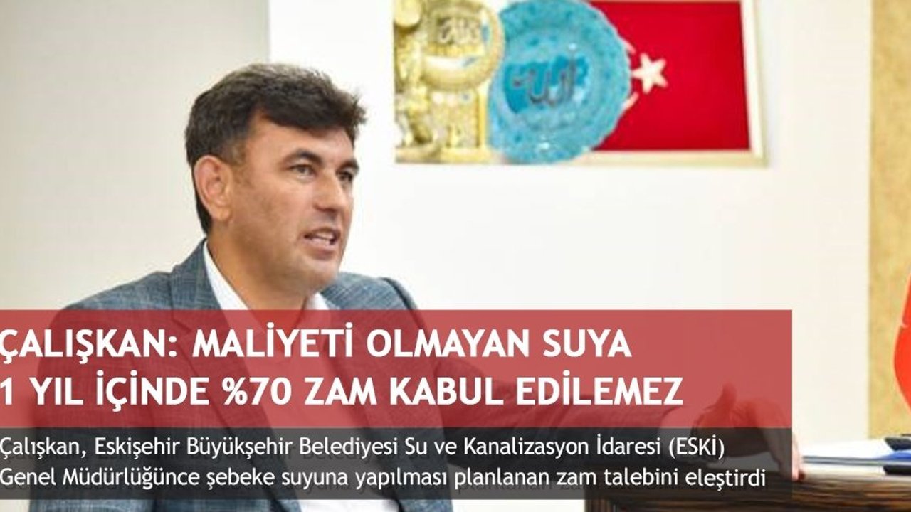 ESKİ'nin bir yıl içinde yüzde 60 ve yüzde 40'lık zamların ardından yüzde 65 civarında üçüncü defa zam talebiyle Büyükşehir Belediye Meclisine geldiğini söyleyen Çalışkan, 'Büyükşehir Belediyesinin şebeke suyuna ilişkin çözüm üretmek yerine başka illerde gözükmediği şekliyle su konusunda yüzde 170'lik zamma ulaşmış olması, açıklanabilir nitelikte değil' diye konuştu.