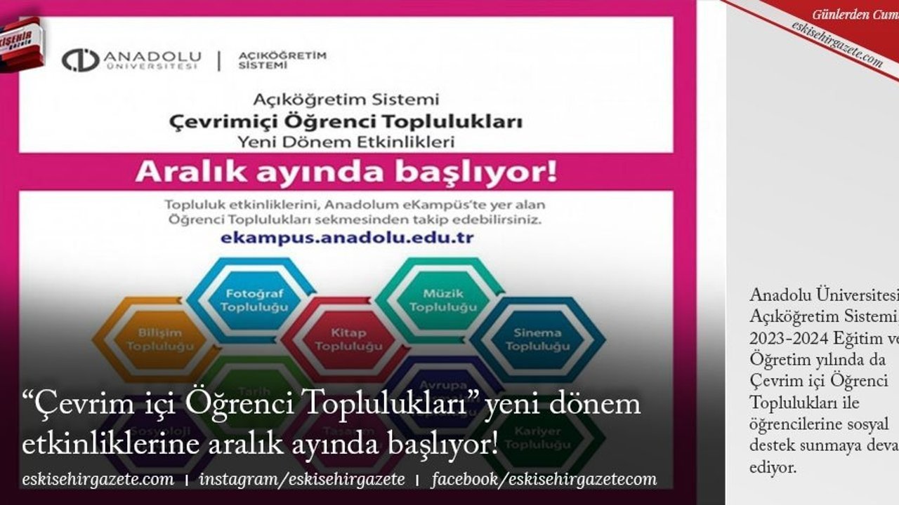 Anadolu Üniversitesi Açıköğretim Sistemi, 2023-2024 Eğitim ve Öğretim yılında da Çevrim içi Öğrenci Toplulukları ile öğrencilerine sosyal destek sunmaya devam ediyor.