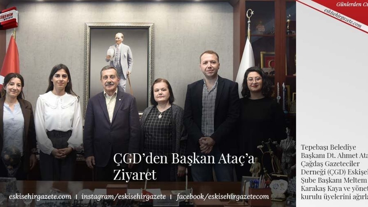 Çağdaş Gazeteciler Derneği (ÇGD) Eskişehir Şubesi 16. Genel Kurulu sonrası ÇGD'nin yeni başkanı Meltem Karakaş Kaya, Şube Başkan Yardımcısı Güray Ateş, Şube Sekreteri Eylem Lodos, Şube Saymanı Ayşe Kaytan Uçak ve üye Hülya Çalık Başkan Ataç'ı makamında ziyaret etti.