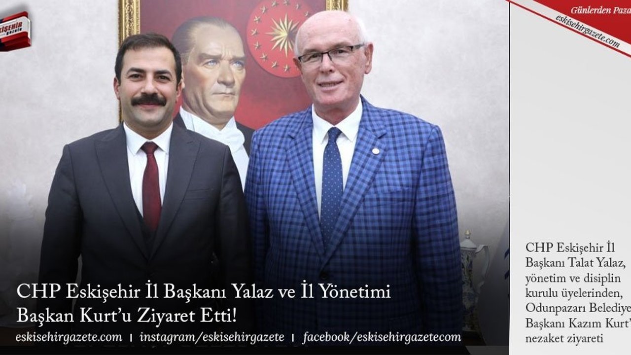 CHP Eskişehir İl Başkanı Talat Yalaz, yönetim ve disiplin kurulu üyeleri, Odunpazarı Belediye Başkanı Kazım Kurt'a nezaket ziyaretinde bulundular.