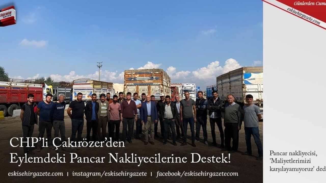 CHP Eskişehir Milletvekili Utku Çakırözer, nakliye ücretlerinin maliyetleri karşılamadığıgerekçesiyle için 3 gündür eylemde olan şeker fabrikası nakliyecilerini ziyaret ederek, destek oldu. Nakliyeciler haklarını alana kadar eylemlerini sürdüreceklerni dile getirirken,Türkiye'nin dört bir yanındaki şeker, pancar nakliyecilerini kendileriyle dayanışma için çağırda bulundu. Geçen seneya göre maliyetlerinin yüzde 200, yüzde 250 arttığını belirten şeker fabrikası nakliyecilerinden Burhan Kıraç yaşadıkları mağduriyeti şöyle dile getirdi: 'YÜZDE 200 ARTAN MALİYETLERİN ÜSTESİNDEN GELEMİYORUZ' 'Bizim nakliye ücretlerinde yüzde 30 zam ile çalışmamızı istiyorlar. Biz bu şartlar altında