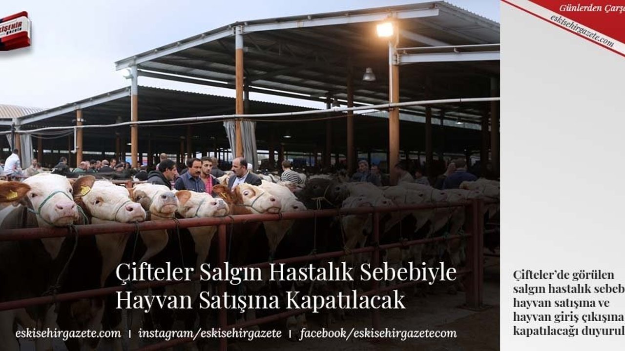 Çifteler Belediyesi salgın hastalık sebebiyle hayvan satış, giriş ve çıkışlarına kapatılacağı duyuruldu. Çifteler belediyesinden yapılan açıklamada 'İlçemizde bulunan hayvan satışının yapıldığı yerlerde ve semt pazarının etrafında salgın hastalık nedeniyle 03.03.2023 Cuma Günü hayvan satışına ve hayvan giriş çıkışına kapıtalacaktır. Tüm hemşehrilerimize duyurulur' ifadelerine yer verildi.