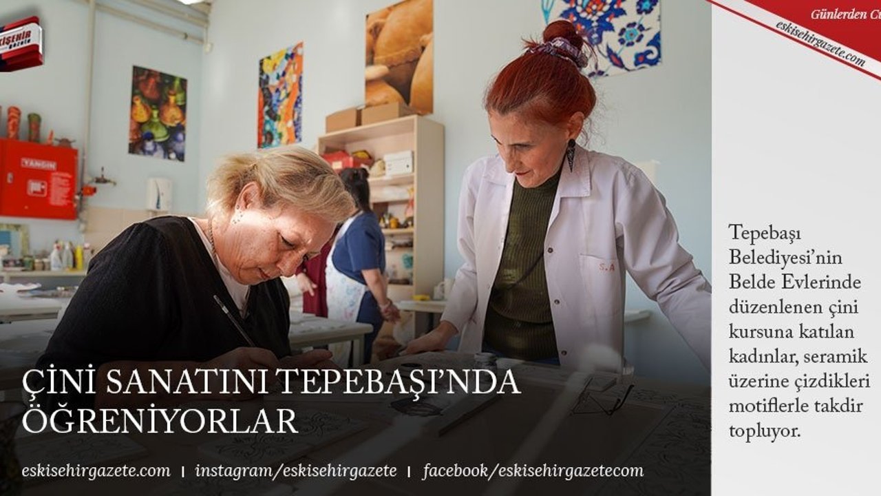 Tepebaşı Belediyesi'nin Belde Evlerinde düzenlenen çini kursuna katılan kadınlar, seramik üzerine çizdikleri motiflerle takdir topluyor.