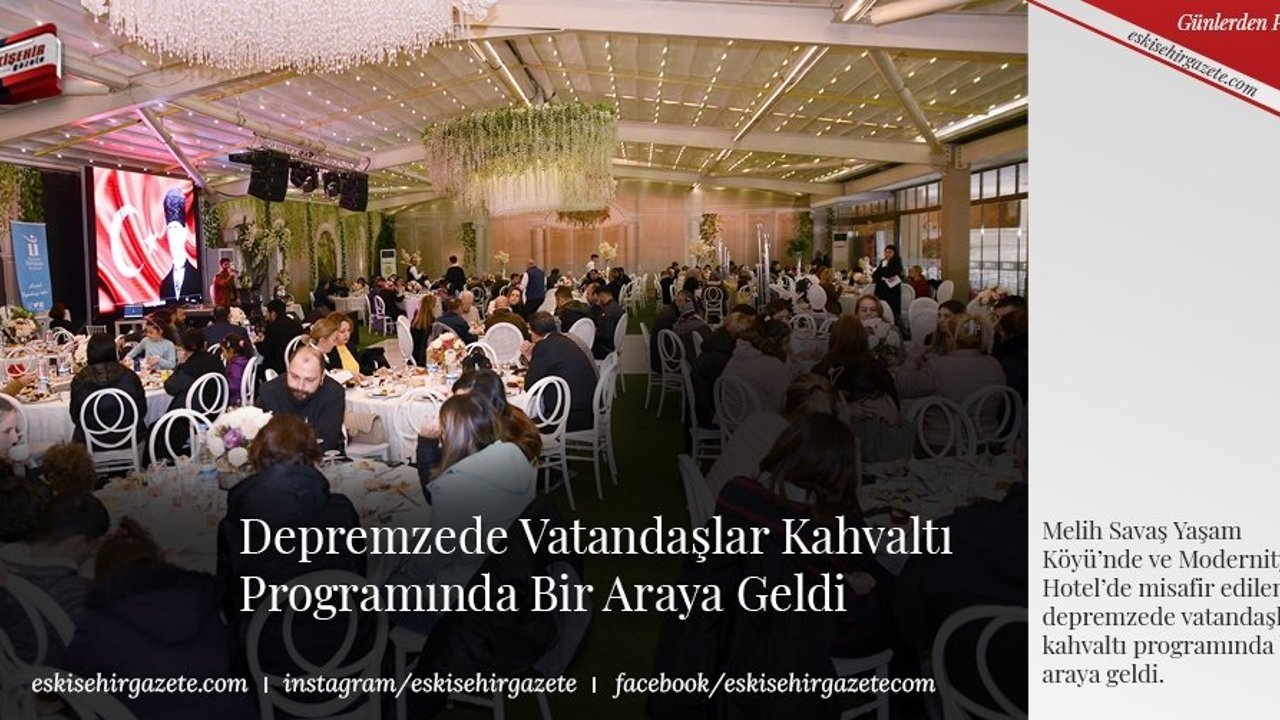 Melih Savaş Yaşam Köyü'nün kapılarını depremzede vatandaşlara açan Tepebaşı Belediyesi, aynı zamanda Modernity Hotel'de konuk ettiği vatandaşlar için kahvaltı programı düzenledi. Buluşmaya CHP Eskişehir Milletvekilleri Utku Çakırözer ve Jale Nur Süllü'nün yanı sıra Tepebaşı Belediye Başkan yardımcıları ve