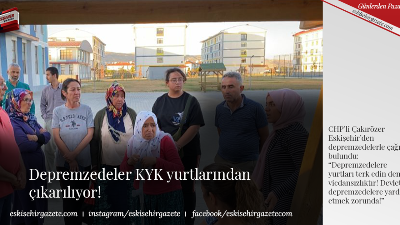 Eskişehir'deki KYK yurtlarında kalan depremzedeleri ziyaret eden Çakırözer de, depremzedelere yaşatılan mağduriyetin bitirilmesi için çağrıda bulundu. Depremzedelerin tüm çağrılarına rağmen yurtlardan çıkarılmasının devlet ciddiyetiyle bağdaşmayacağını söyleyen Çakırözer, şunları aktardı: