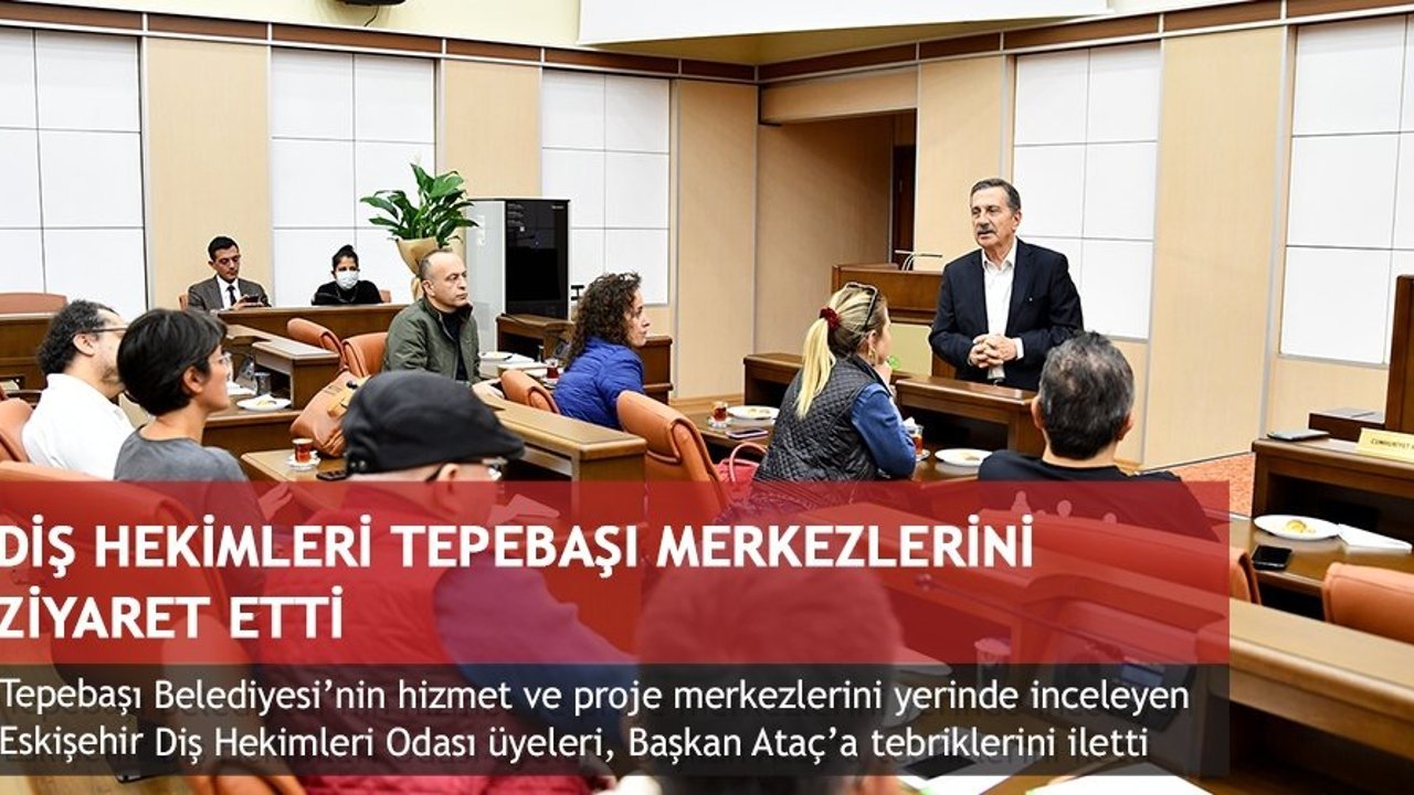 Son olarak Tepebaşı Belediye Başkanı Dt. Ahmet Ataç da meslektaşı olan diş hekimleri ile belediye meclis salonunda bir araya geldi. Tepebaşı Belediyesi'nin çalışma ve projelerinde daima insanı odak noktası edindiğini aktaran Başkan Ataç, Tepebaşı'nda sağlık projelerinin de önemli bir yeri olduğunu vurguladı.