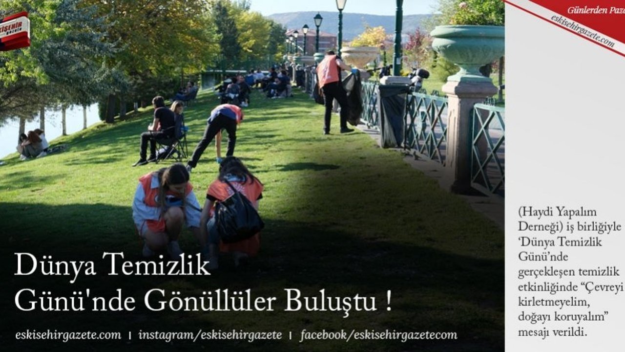 Dünya Temizlik Gününde binlerce gönüllü ile yüzlerce temizlik noktasında temizlik yapılan bu özel günde Eskişehir'de de Sümerpark ve Porsuk Çayı çevresinde temizlik çalışması gerçekleştirildi. Etkinliğe Büyükşehir Belediyesi ve Let's Do It Türkiye görevlileri ile Tema ve Kızılay gibi çok sayıda sivil toplum kuruluşundan temsilciler katıldı.