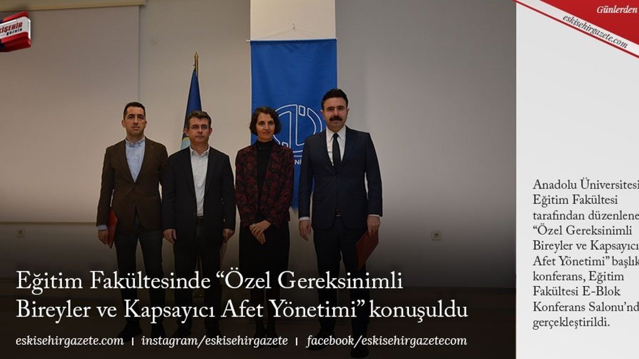 Anadolu Üniversitesi Eğitim Fakültesi tarafından düzenlenen 'Özel Gereksinimli Bireyler ve Kapsayıcı Afet Yönetimi' başlıklı konferans, Eğitim Fakültesi E-Blok Konferans Salonu'nda gerçekleştirildi.
