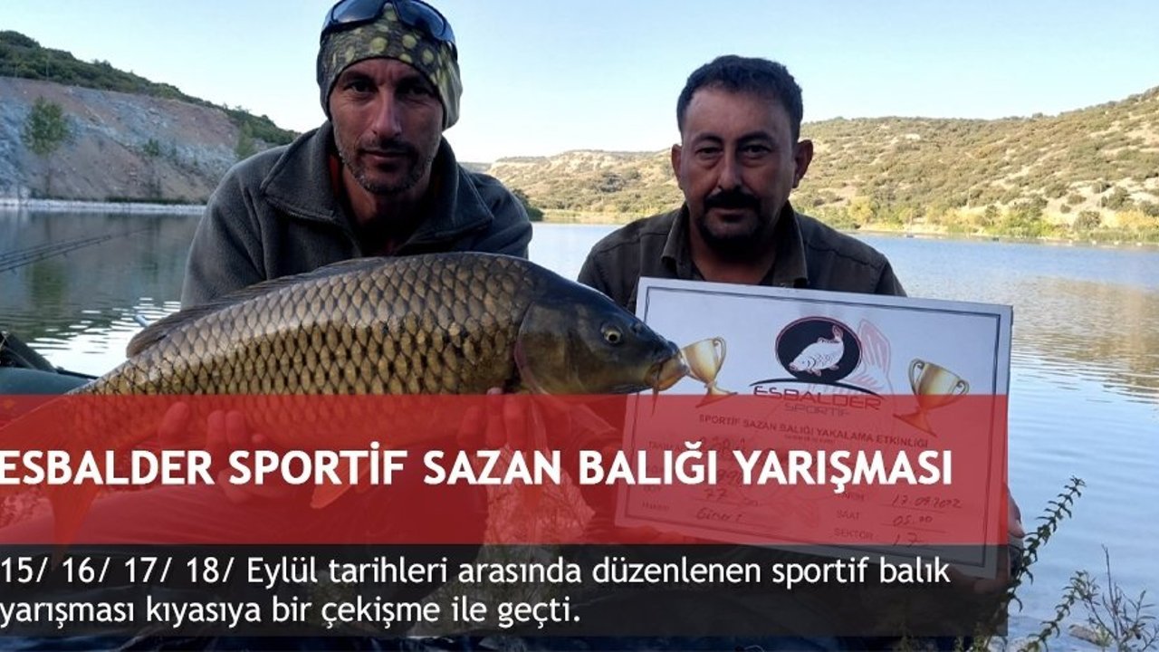 ESBALDER Derneğinin düzenlediği Eskişehir Büyük Şehir Belediyesi, Eski, Tepebaşı belediyesi ve bir çok sponsorun destekleri ile gerçekleşen yarışmada toplamda 28 adet 78 kilo balık tutulurken limit altı yani 40 santimin altında 70 balık yakalandı. En büyük balık kategorisinde Kütahya'dan KÜSOBDER Derneğinden (Börü Sazan Takımı) 77santim 5kilo990 gramla kazandı. En çok balık kategorisinde 7 balıkla 17 kilo 03gramla Uşak Sportive Carp Team 1. Oldu. En çok balık yakalayan 2. Si 12 kilo 975 gramla en büyük balığı yakalayan Börü takımı oldu. En çok balık yakalayan 3. Sü ise 9 kilo 345 gramla inegölden Dostum İnegöl-1 takımı dereceye girdi.
