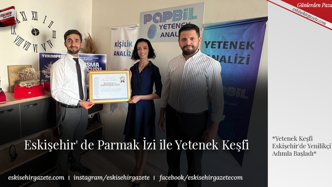 Eskişehir'de Sertes Enerji Eğitim Danışmanlık Şirketi ve Papbil Yazılım Teknolojileri işbirliği ile heyecan verici bir girişim hayata geçiriliyor. Bu işbirliği çerçevesinde, kişilerin KVKK kapsamında parmak izi analiziyle özellikle çocukların yetenek, öğrenim zekası ve karakter analizleri uzman psikologlar eşliğinde yapılarak, doğru eğitim ve kariyer planlamalarına destek olunuyor.