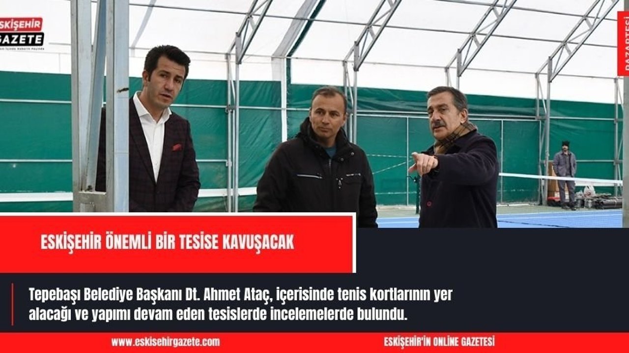 Tepebaşı Belediye Başkanı Dt. Ahmet Ataç, içerisinde tenis kortlarının yer alacağı ve yapımı devam eden tesislerde incelemelerde bulundu. Eskişehir'de önemli bir ihtiyacı karşılayacak tesislerin kısa süre içerisinde vatandaşların kullanımına sunulması planlanıyor.