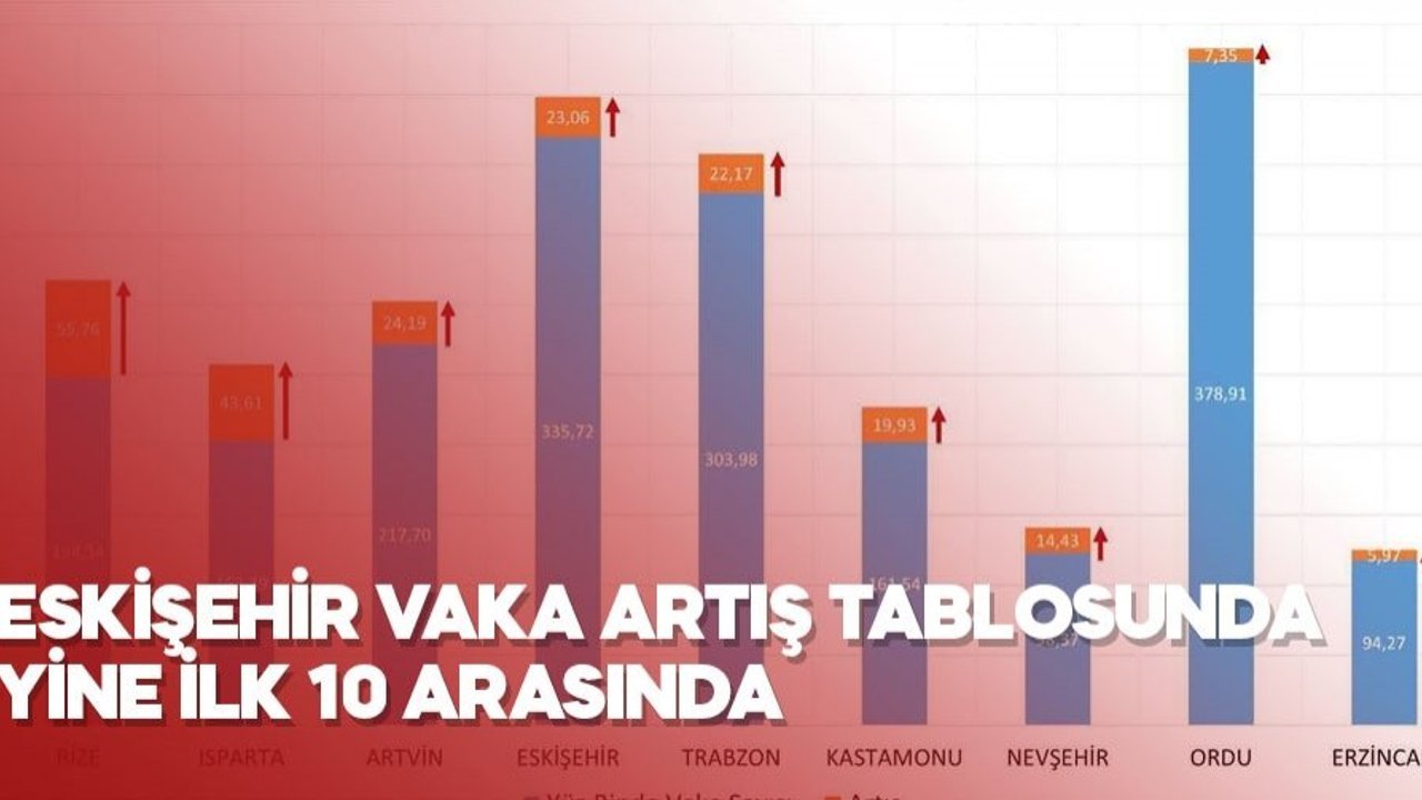 Eskişehir, Türkiye genelinde bir haftada en fazla vaka artışı yaşanan iller arasında 4, en yüksek aşılama oranına sahip iller arasında ise 7'nci sırada yer alıyor.