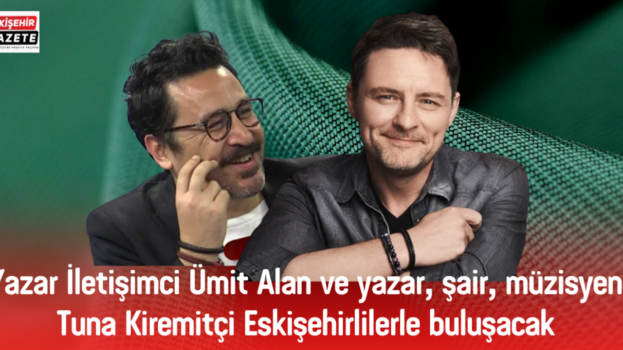 Yazar- iletişimci Ümit Alan ve yazar, şair, müzisyen Tuna Kiremitçi Eskişehirlilerle buluşacak. 'Eskişehir'de Büyümek, Eskişehir'i Özlemek!' başlıklı söyleşiye konuşmacı olarak katılacak Eskişehirli Ümit Alan ve Tuna Kiremitçi, Eskişehir ile ilgili düşüncelerini katılımcılarla paylaşacaklar.