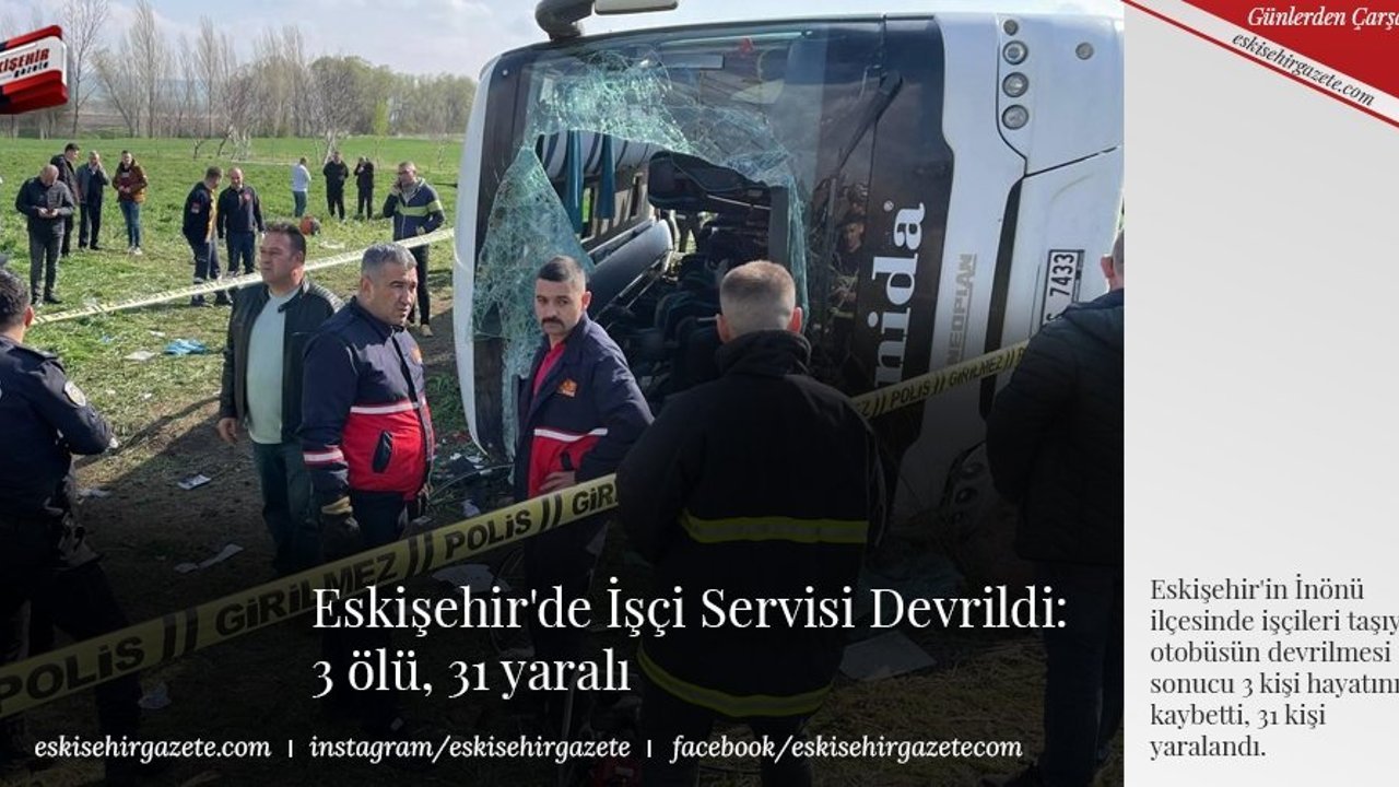 Eskişehir'in İnönü ilçesinde işçileri taşıyan otobüsün devrilmesi sonucu 3 kişi hayatını kaybetti, 31 kişi yaralandı.