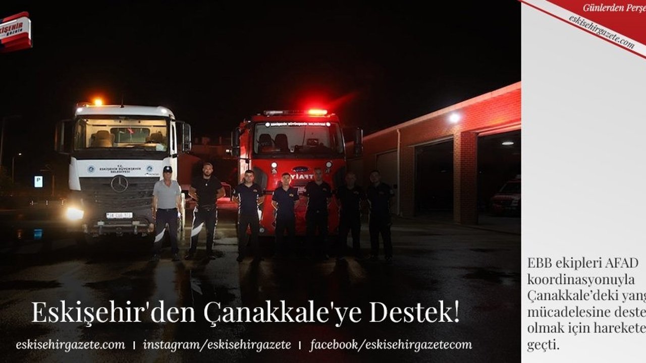 Eskişehir Büyükşehir Belediye Başkanı Yılmaz Büyükerşen, Çanakkale'deki yangın mücadelesine destek için İtfaiye Dairesinden bir arazöz ile Park ve Bahçeler Dairesinden bir su tankerinin dün gece itibariyle yola çıktığını sosyal medya hesaplarından duyurdu. Sabah saatleri itibariyle bölgeye ulaşan ekipler, 1500 hektar alanı etkileyen Çanakkale yangınında bölgede görev yapan diğer ekiplerle birleşerek yangın söndürme çalışmalarına başladılar.