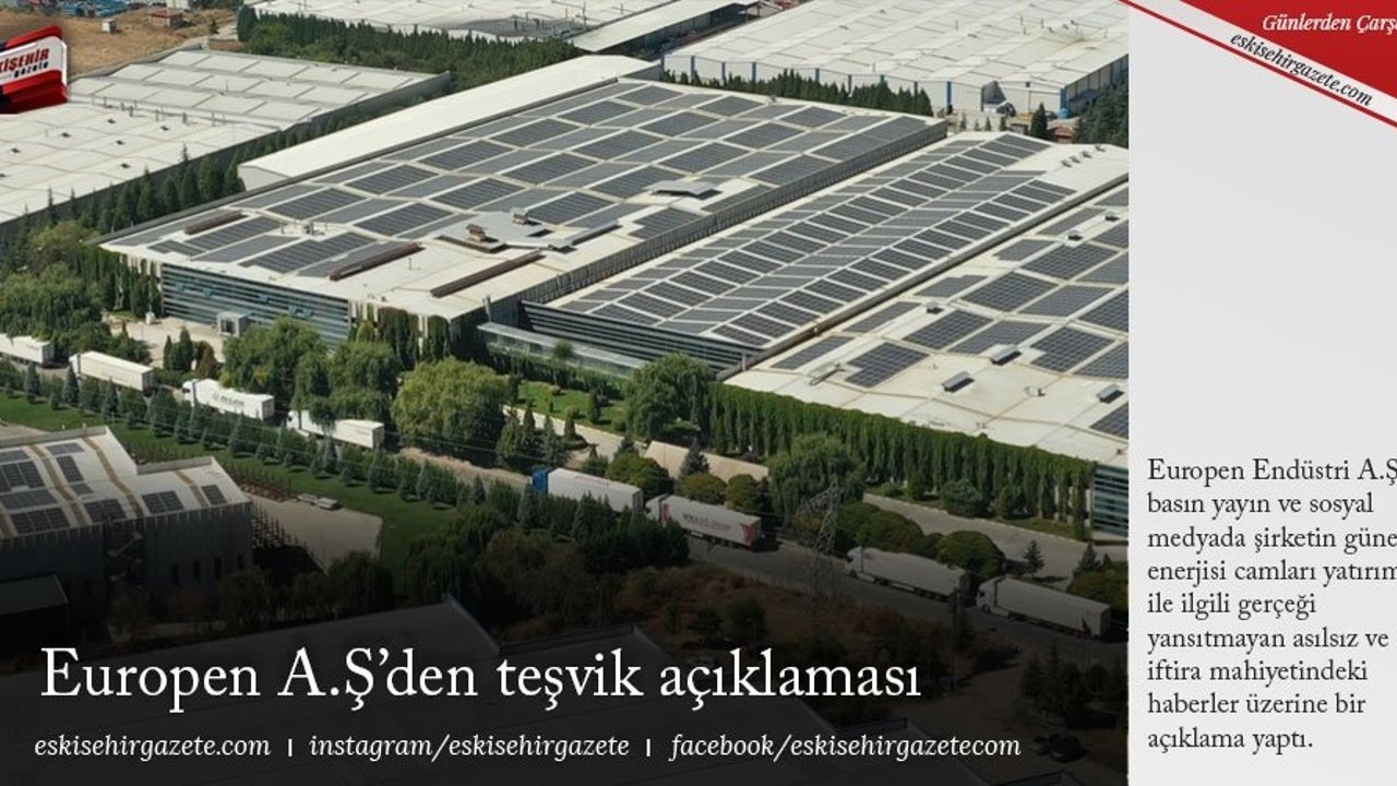 Europen Endüstri A.Ş. basın yayın ve sosyal medyada şirketin güneş enerjisi camları yatırımı ile ilgili gerçeği yansıtmayan asılsız ve iftira mahiyetindeki haberler üzerine bir açıklama yaptı.