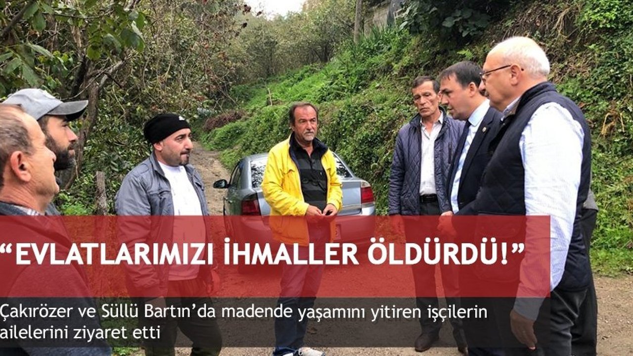 Aileleri dinleyen Çakırözer ve Süllü ise yaptıkları açıklamalarda, 'Faciada yaşamını yitiren maden emekçilerimizin her biri ardında acılı birer aile, eş, baba, evlat bıraktı! Acıların tarifi imkansız. Kederli ailelerimizin acılarını paylaşıyor, yaşamını yitiren 41 maden emekçimize Allah'tan rahmet, yaralılarımıza acil şifalar diliyoruz. Acılı aileleri dinledik! Bu cinayetlerin ardında tek gerekçe var o da tedbirsizlik, önlem almama! Emekçilerimizin acılı eşlerinin, evlatlarının, kardeşlerinin, anne ve babalarının feryatlarına kulak tıkanmasına izin vermeyeceğiz. Ailleremizin tek isteği, tek talebi var! Bu patlamada ihmali olan sorumluların ortaya çıkarılması, yargı önünde hesap sorulması ve bir daha bu acıların yaşanmaması! Cumhuriyet Halk Partisi olarak biz bunun takipçisi olacağız' dedi.