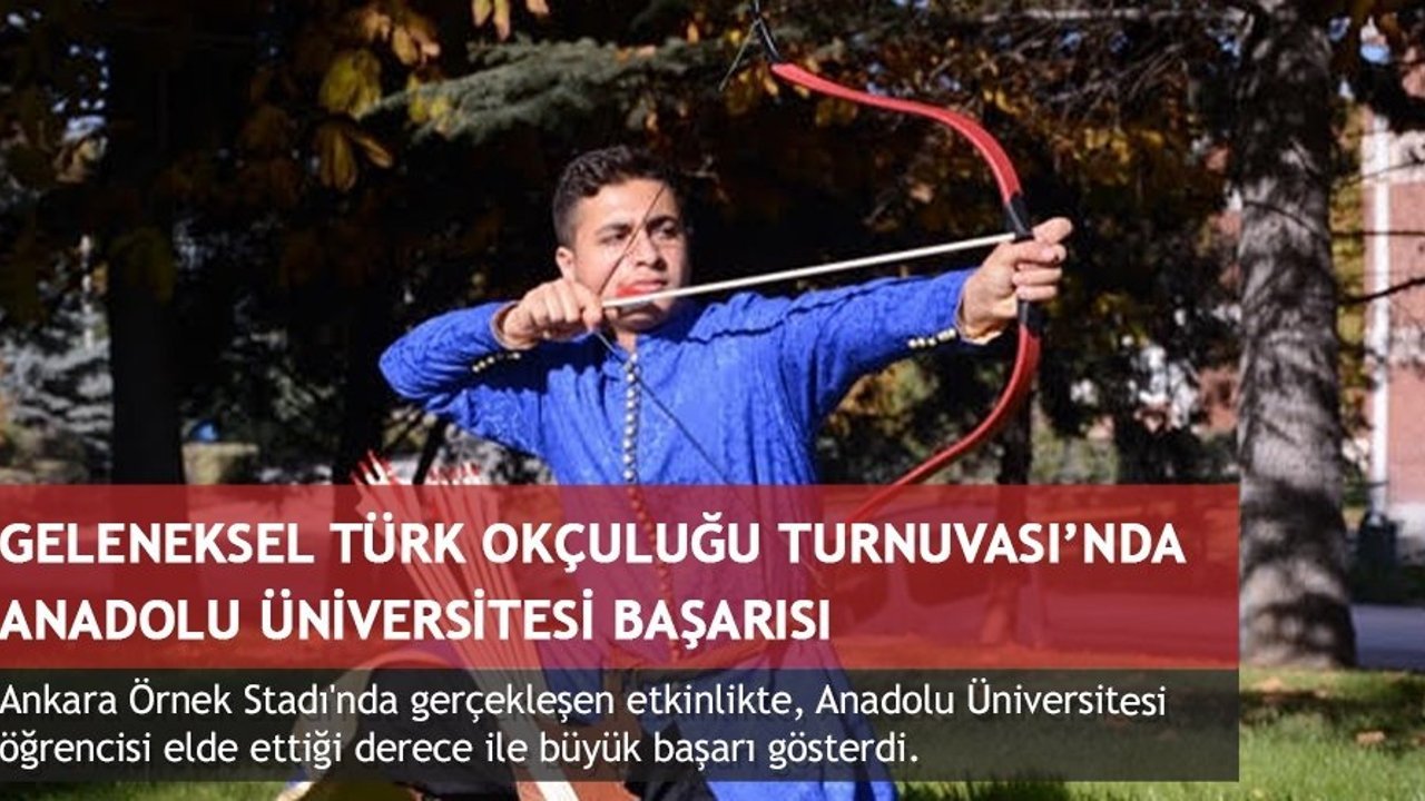 Tüm Türkiye'den gençlik merkezi üyesi 18-29 yaş aralığındaki erkek ve kadın sporcuların katıldığı Gençlik Merkezleri Arası Geleneksel Türk Okçuluğu Turnuvası'ndan Anadolu Üniversitesi öğrencisi madalya ile döndü. Hukuk Fakültesi son sınıf öğrencisi Berkay Kalay müsabakada rakiplerini geride bırakarak Türkiye 2'incisi oldu ve Üniversitemizi gururlandırdı.