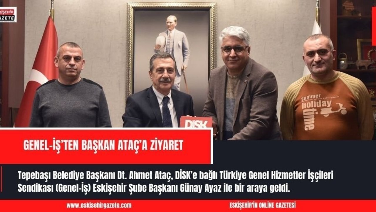 Tepebaşı Belediye Başkanı Dt. Ahmet Ataç, DİSK'e bağlı Türkiye Genel Hizmetler İşçileri Sendikası (Genel-İş) Eskişehir Şube Başkanı Günay Ayaz ile bir araya geldi.Tepebaşı Belediye Başkanı Dt. Ahmet Ataç'ın sendika temsilcileri ile temasları sürüyor.