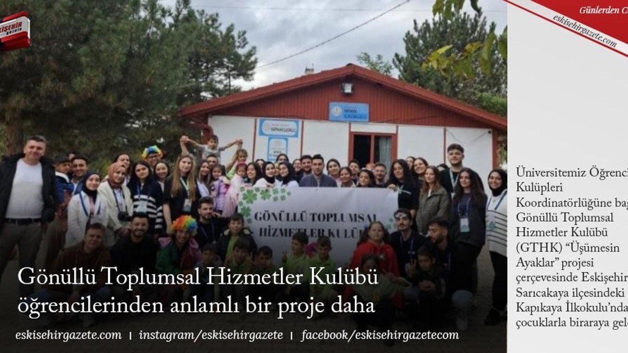 Üniversitemiz Öğrenci Kulüpleri Koordinatörlüğüne bağlı Gönüllü Toplumsal Hizmetler Kulübü (GTHK) 'Üşümesin Ayaklar' projesi çerçevesinde Eskişehir'in Sarıcakaya ilçesindeki Kapıkaya İlkokulu'nda çocuklarla biraraya geldi.