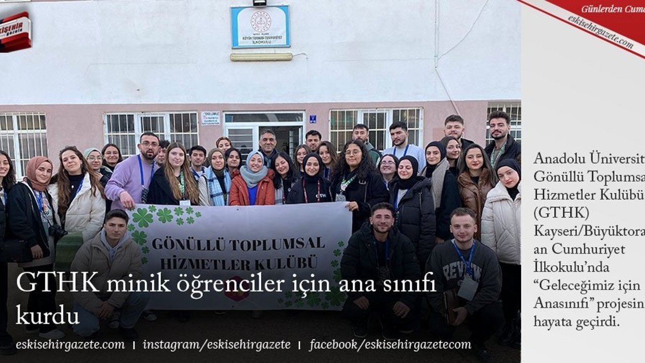 Anadolu Üniversitesi Gönüllü Toplumsal Hizmetler Kulübü (GTHK) Kayseri/Büyüktoraman Cumhuriyet İlkokulu'nda 'Geleceğimiz için Anasınıfı' projesini hayata geçirdi.