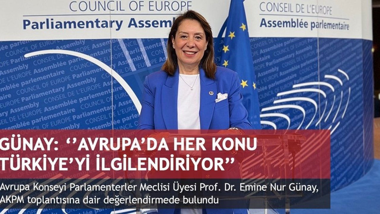 Avrupa'da gündemde olan tüm konuların bir şekilde Türkiye'yi ilgilendirdiğini dile getiren Prof. Dr. Günay, ''Bir hafta boyunca süren Avrupa Konseyi Parlamenterler Meclisi Güz Dönemi Toplantımızı tamamladık. Burada Avrupa'nın konuştuğu, tartıştığı tüm konular ülkemizi ilgilendiriyor. Bu nedenle çok yakından takip edip, ülkemizin öncelikleri ve dış politikasını en doğru şekilde anlatmak önceliğimiz.'' Şeklinde açıklamada bulundu.