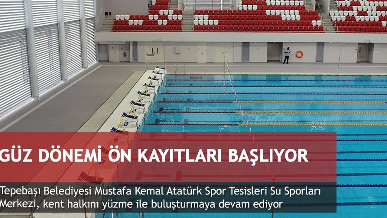 Tepebaşı Belediyesi'nin uluslararası Leed Sertifikalı yeşil bina özelliğine sahip Mustafa Kemal Atatürk Spor Tesisi ve Su Sporları Merkezi'nde 2022 Güz Dönemi ön kayıtları başlıyor. Su Sporları Merkezinde, 19 yaş ve üzeri yetişkinler için su jimnastiği, serbest saat ile yüzme eğitimi olarak belirlenen, 5-18 yaş arası çocuklar için de verilecek olan yüzme eğitimine katılmak isteyenler 22 Ekim Cumartesi günü saat 09.00'dan 27 Ekim Perşembe günü saat 18.00'e kadar ön kayıt yaptırabilecek. Asıl kayıt tarihleri ise doldurulan talep formdaki telefon numaralarına gönderilecek.