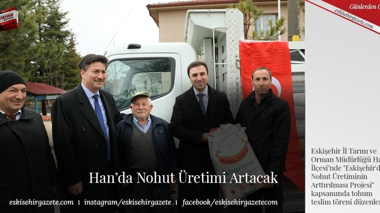 Eskişehir İl Tarım ve Orman Müdürlüğü Han İlçesi'nde 'Eskişehir'de Nohut Üretiminin Arttırılması Projesi' kapsamında tohum teslim töreni düzenlendi.