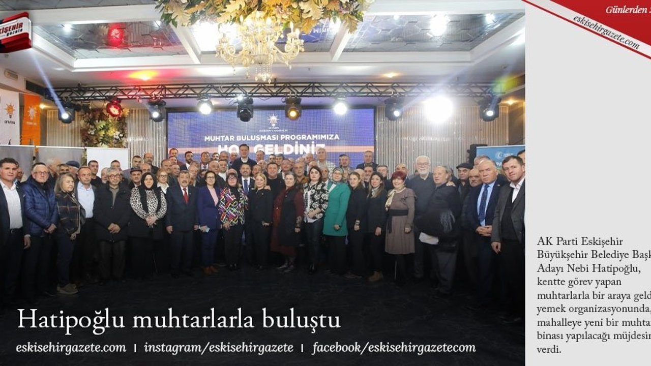AK Parti Eskişehir Büyükşehir Belediye Başkan Adayı Nebi Hatipoğlu, kentte görev yapan muhtarlarla bir araya geldiği yemek organizasyonunda, her mahalleye yeni bir muhtarlık binası yapılacağı müjdesini verdi.