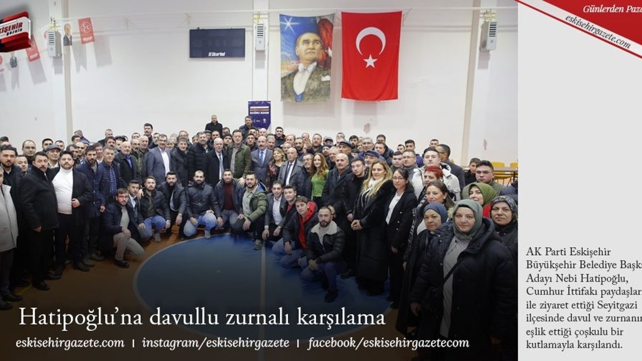 AK Parti Eskişehir Büyükşehir Belediye Başkan Adayı Nebi Hatipoğlu, Cumhur İttifakı paydaşları ile ziyaret ettiği Seyitgazi ilçesinde davul ve zurnanın eşlik ettiği çoşkulu bir kutlamayla karşılandı.
