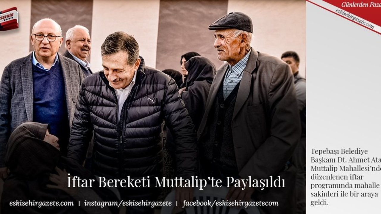 Tepebaşı Belediye Başkanı Dt. Ahmet Ataç, Muttalip Mahallesi'nde gerçekleştirilen iftar programında Eskişehirliler ile bir araya geldi. Mahalle sakinlerinin yoğun ilgi gösterdiği iftara CHP Eskişehir Milletvekilleri Utku Çakırözer ile Jale Nur Süllü, CHP Eskişehir Milletvekili Adayı Abdülkadir Adar, CHP Tepebaşı Meclis üyeleri Hasan Tutucu, İbrahim Kökdere, Abdulkerim Gül, mahalle muhtarları ve çok sayıda Muttalip sakini katıldı.