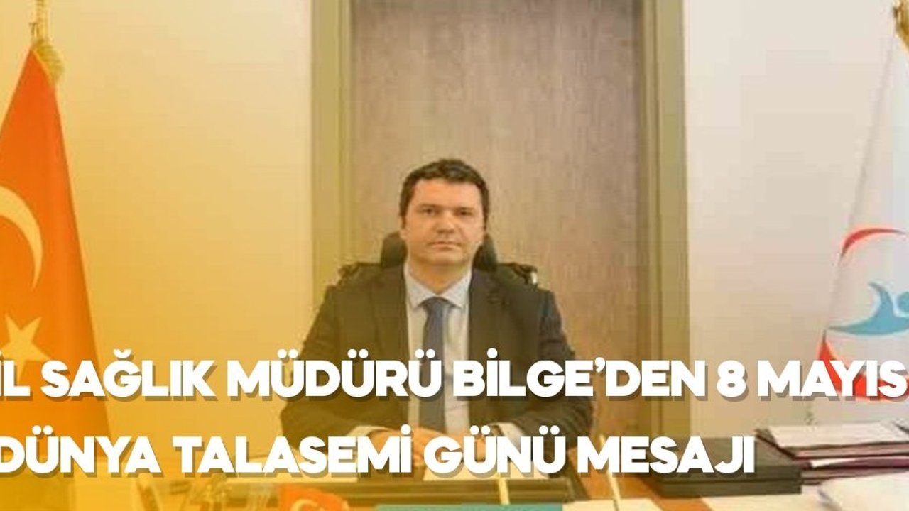 Mesajında Talasemi hastalığı hakkında konuşan İl Sağlık Müdürü Dr. Bilge, 'Talasemi ve diğer kalıtsal kan hastalıklarının önemini vurgulamak ve toplumda farkındalık oluşturmak adına, 1993 yılından bu yana tüm dünyada '8 Mayıs Dünya Talasemi Günü' olarak anılmaktadır. Talasemi ve orak hücre anemisi başta olmak üzere kalıtsal kan hastalıkları ülkemizde ve dünyada önemli bir halk sağlığı sorunudur. Ülkemizde akraba evliliklerinin fazla olması, genetik geçişli bir hastalık olan Talasemi'nin görülme sıklığını arttırmakta, her yıl yüzlerce hastalıklı çocuk dünyaya gelmekte, aileler ve toplum maddi manevi zarara uğramaktadır. Talasemi taşıyıcılarının büyük çoğunluğu bu hastalığı taşıdıklarını bilmezler. Ancak Talasemi hastası bir çocuk sahibi olduklarında ya da özel kan testi yaptırdıklarında öğrenirler. Talasemi deride solukluk, halsizlik, çabuk yorulma, çarpıntı, gelişme geriliği gibi belirtilerle gösterir. Bazı vakalarda demir eksikliği anemisi ile birlikte görülmekle beraber, sıklıkla demir eksikliği anemisi ile karıştırılabilmekte ve bu nedenle özel testle tanının kesinleştirilmesi önem arz etmektedir' dedi.